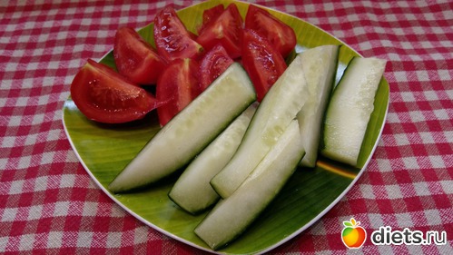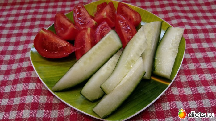 и огурчики с помидорками(несколько кусочков Егорка съел)