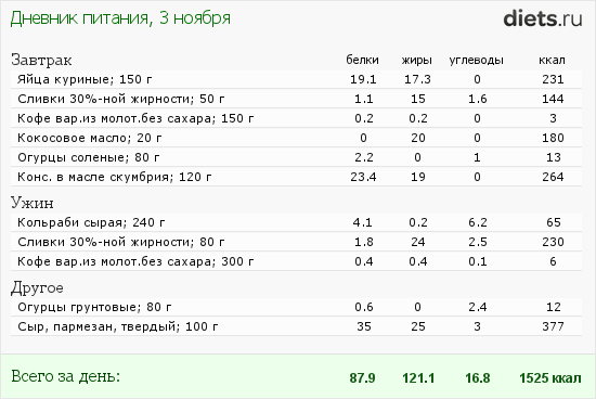 В 10:30 завтрак на работе из 2 вареных яйц, большого соленого огурца и половины баночки сайры в масле.