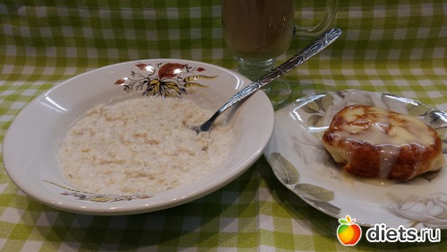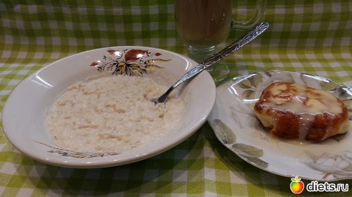 З.овсяная каша с яблоком и клюквой+оладушек со сгущенкой+кофемолоко