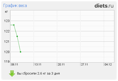 На весах 120кг., минус 1,5кг. относительно вчерашнего утра.
