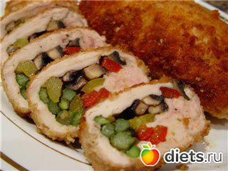 Diets.ru КУРИНЫЙ РУЛЕТ со сладким перцем, шпинатом и грибами.