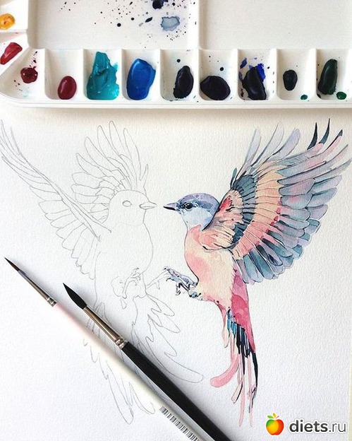 Моя птичка на веточке и помощница летучая мышь рисуют картины!!!