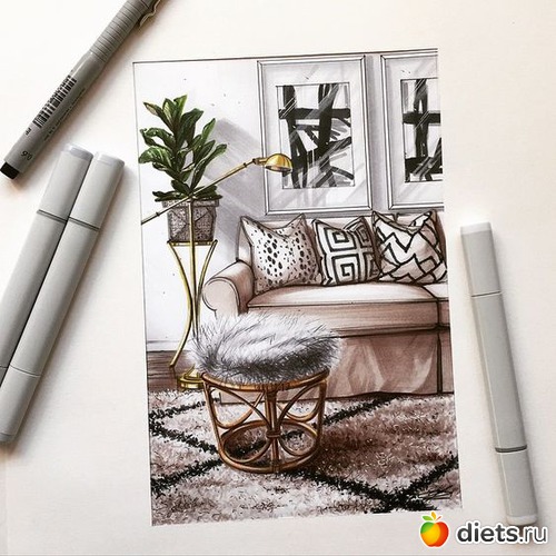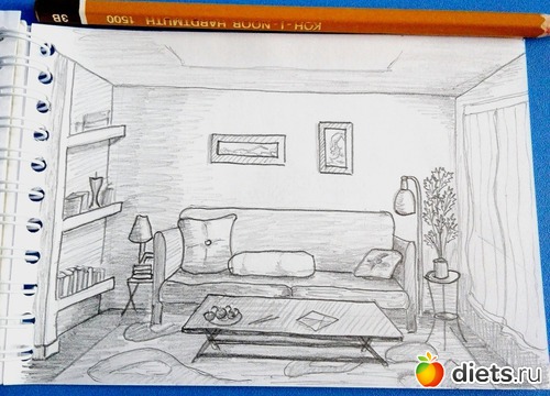 Доброе утро! Сегодня моя сама наверное не любимая тема "интерьер". Не знаю почему но не люблю я эти перспективы и построения. А как известно, в интерьере все подчиняется законам перспективы.