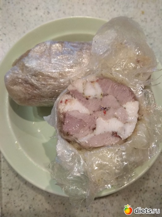 Колбаса просто порезаны кусочки грудки и бедро индейки. На 1200 общего веса накрутила из мельниц приправ (французские, Чили острый, чеснок-травы-соль) грамма по 3 каждой. + 2 чайные ложки Агар-Агар (и то подумываю может маловато было) и 1 дольку чеснока порезала (короче все приправы по вкусу Завернула