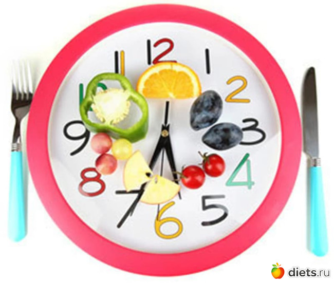 3) Питаться 5-6 раз в день: 3 основных приема пищи и 2-3 перекуса. Промежуток между приемами пищи – 2,5 – 4 ч. Не больше!
