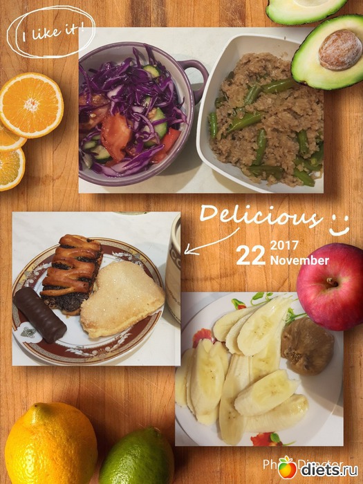 Обед: гречневые хлопья с стручковой фасолью, салат (капуста, огурец, помидор, немнооо масла)