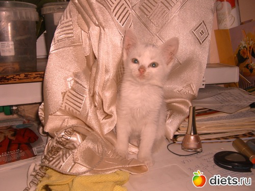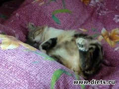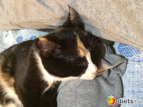 Третий кот появился у меня (я жила с мч отдельно). Увидела в коробке в метро. Все котята спали, а он единственный был привязан розовой ленточкой к коробке, потому что рвался куда-то....
