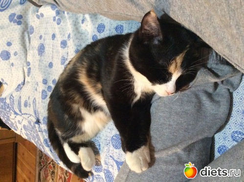 Лариска. Она же Лоренца, она же Коровишна, Люська, Деука. Дворянской породы. С Сыном Гришкой, которого, когда сержусь называю Барсиком. Забрала к себе после смерти мамы. Не любит, когда её берут на руки. Будет пыхтеть недовольно, но иногда придет утром, под одеяло залезет и мурлычет на весь дом. Подарок.