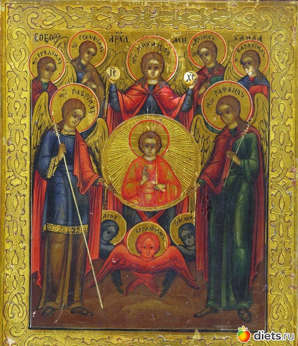 Варахаил – передает Божественное благословение. Обычно представлен на иконах в розовых одеяниях.