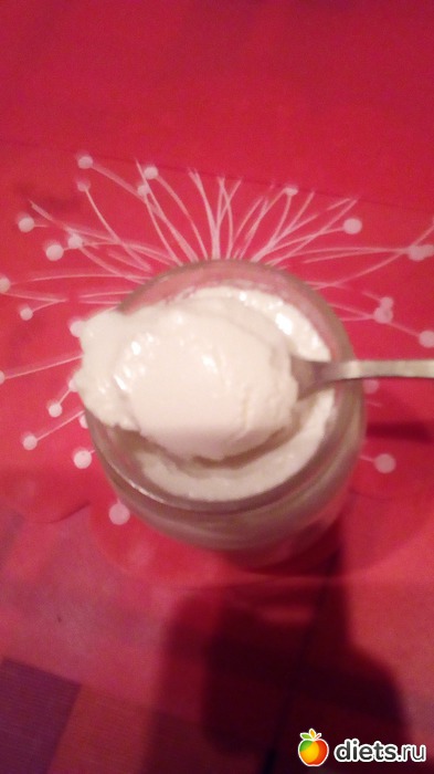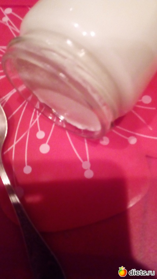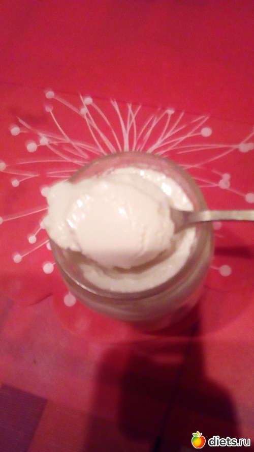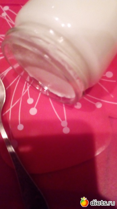 Показываю его густоту. Делала на 15% сметане(на 1л молока+2ст.л.сметаны)