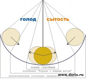 Вот так мы имеем раскачанный маятник, который по прошествии небольшого времени заставляет то переедать, то испытывать голод.