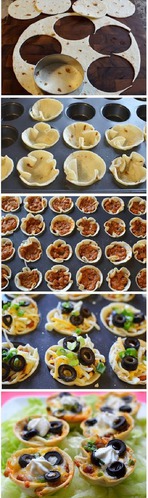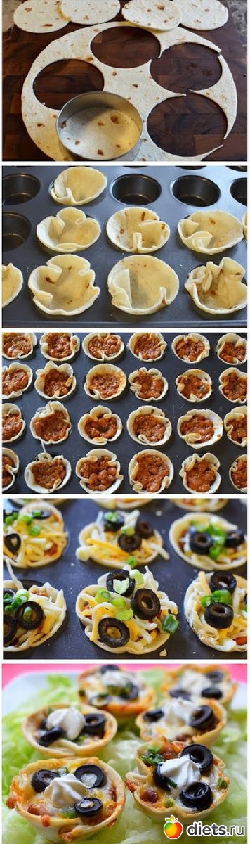Лаваш нарезать кругами. Уложить в формочки, на дно положить кетчуп и фарш. Сверху положить слой из тертого сыра с порезанным зеленым луком и нарезанными кружочками маслин. Запечь в духовке до расплавления сыра. Сверху положить сыр маскарпоне или сметану.