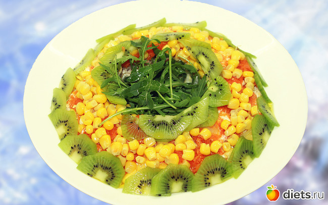 Diets.ru Новогодний Салат МАЛАХИТОВЫЙ БРАСЛЕТ - Салат с куриной грудкой, кукурузой и киви