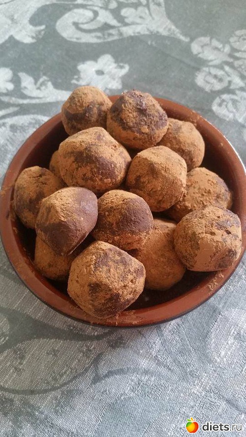 Я обваляла в какао порошке, можно и так оставить или обвалять в орешках или кокосовой стружке.