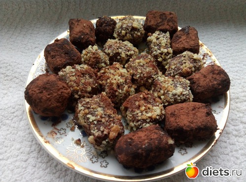 Я обваляла в какао порошке, можно и так оставить или обвалять в орешках или кокосовой стружке.