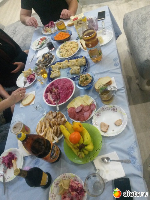 Переехали, я накрыла стол, никто не ожидал, думали быстренько перекусить что-нибудь на коробках, в итоге получилось полноценное новоселье с горячим в виде мантов, двумя салатами и разными нарезками, я еще и буженину накануне сделала из свинины и курицы). Конечно, второпях, не до сервировки, даже рюмок не нашла, вилки не все))), но все все поняли, переезд дело такое...