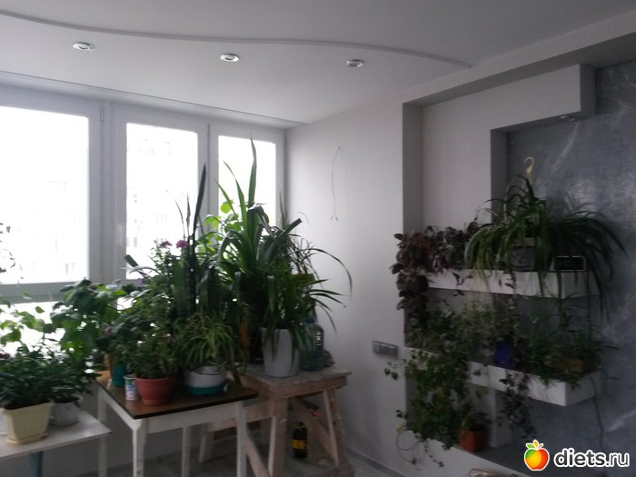 Пришлось оставить строительные "леса" и на них тоже расставлять горшки.. на лесах и аквариум стоит))