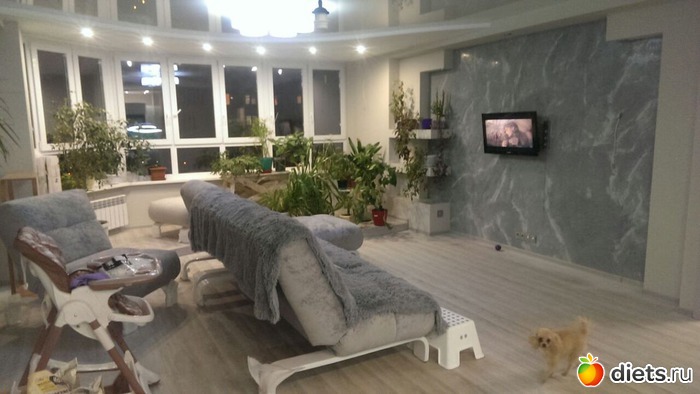 У нас большой зал-кухня вместе и плюс балкон присоединен, живем - я, муж и малышка (1,8 г) с нами на кровати (модули - диван+кресло, все раскладывается до горизонтали), наша спальня завалена мешками, а старшая дочка (вчера ей стукнуло 16 лет!)) в своей комнате, из мебели только кровать (модули из того же комплекта - кресло и пуфик). Пока так).