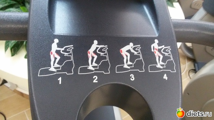 У этих тренажеров педали двигаются не вперед-назад, а немного вперед и в сторону. Из-за такого хода хорошо нагружается внешняя сторона бедра и попа.