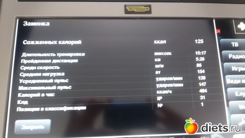 После тренировки, когда перестаешь передвигать педали, появляется вот такое окно.