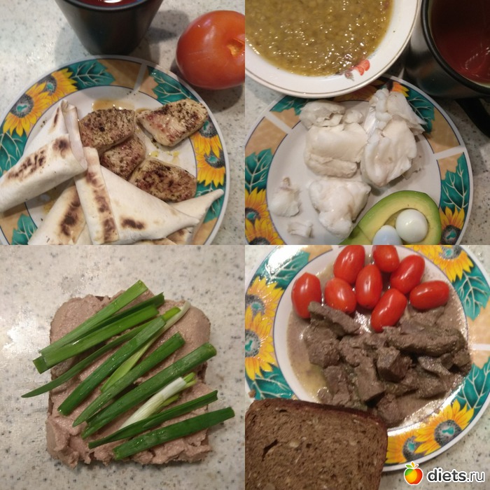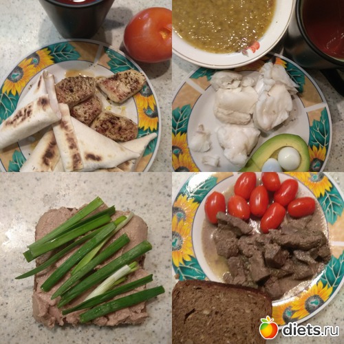 без всего. Просто вареная рыба и немного соли сверху, мммм. А вот авокадо разочаровало. Совсем, видать не спелое. Горчило. Не доела. Спас сладкий чай (с сахзамом).