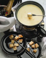 Густой молочный соус развести бульоном. Положить в соус тертый сыр (советский, швейцарский и т. п.) и тщательно перемешать.