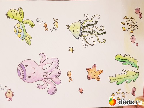 Мы сейчас с дочей объемную картинку делаем)) море она уже нарисовала, теперь надо ракушки наклеить... только пока не придумали чем клеить будем