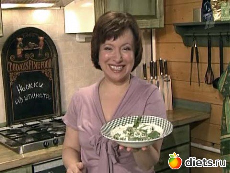 Отожмите замоченный в молоке хлеб и шпинат и пропустите через мясорубку вместе с обжаренным луком. Перемешайте и добавьте тертый сыр. Посолите, поперчите, положите мускатный орех и яйцо. Сформируйте ньокки при помощи двух столовых ложек. Присыпьте мукой и варите ньокки в слабо кипящей, подсоленной воде до тех пор, пока они не всплывут. Готовые ньокки подайте с сырным соусом. Сырный соус. Подогрейте сливки и растворите мягкий рассольный сыр. Если соус окажется солоноватым, добавьте немного сливок или молока.