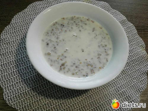 Обед: молоко с гречкой (суп); паровая куриная котлета и винегред