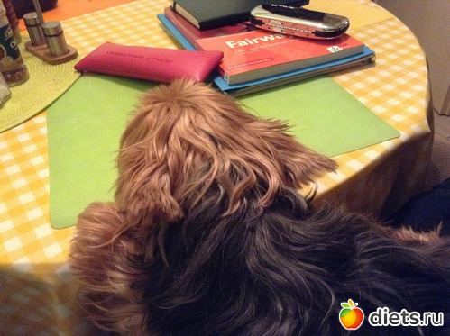 Какой отличный гороскоп на сегодня! Подарки я вчера докупила и пока вроде всё! Сегодня запакую красиво, ёлку занести и поставить вечером, немного продуктов подкупить, пока всё! Манька симпатяшка! Ей привет от Каспарки! Разбудил меня в три ночи! Лаял на газету! Потом я немного телек посмотрела и в пол 5-го блинчики мужу пекла! Потом мы с ним душевненько так позавтракали, отправила его на работу, а сама решила английский поучить! На улице темно! Да и рано с Каспарычем шарахаться! А он с нами блинчиков со сметанкой потрескал, залез ко мне на колени и вздыхает, внимания просит!