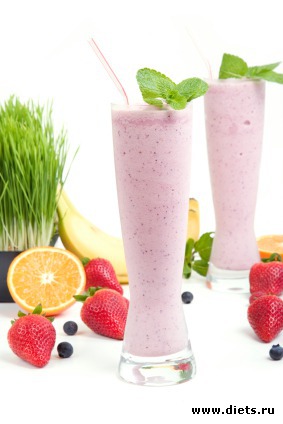 В блендере сначала смешайте банан, ягоды, йогурт и апельсиновый сок. Добавьте льняные семечки и снова перемешайте. Разлейте по стаканам и подавайте.