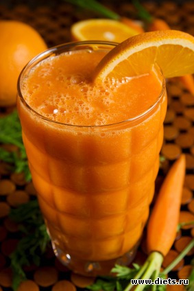 Смешайте в блендере морковь с морковным соком. Добавьте оставшиеся ингредиенты, смешайте до консистенции смузи и сразу же подавайте.