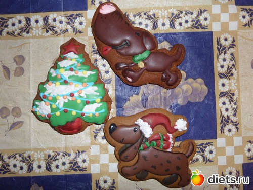 Уже дома меня ждал сюрприз от знакомого кондитера, специально для моей семьи она приготовила рождественские пряники в виде ёлочек, собачек и дедов Морозов, два кулька мини-безешек и столько же лимонного зефира. Естественно, я все попробовала (на фото лишь остатки роскоши).