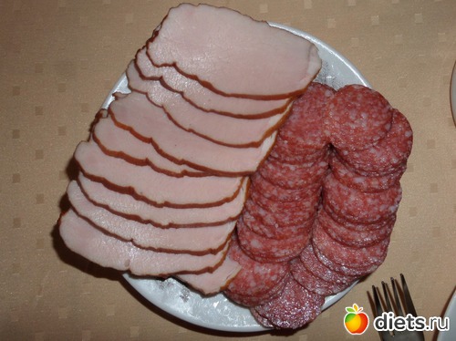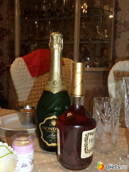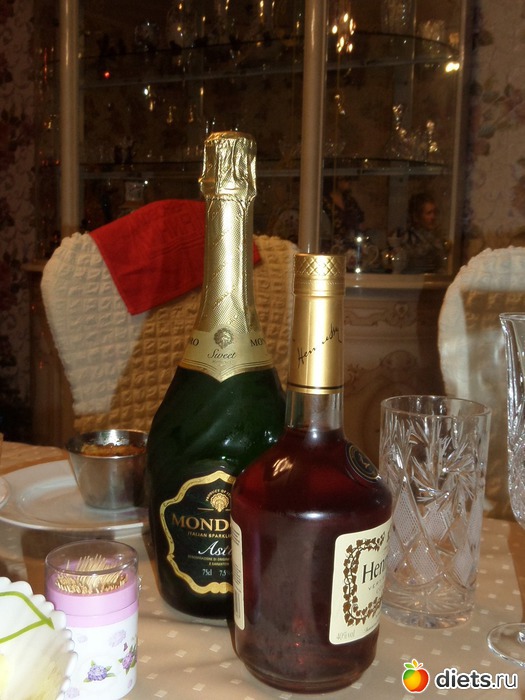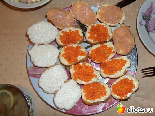А вот ужин был офигительным! Праздновала с семьей у мамы. Так как день был белковым, старалась налегать на мясо. Ела отбивные из свинины, заливное из языка с хреном и горчицей, люля-кебабы, курицу в апельсиново-медовом маринаде, бутерброд с красной икрой и колбасу. Пила полусладкое игристое вино.