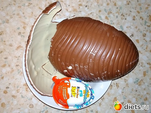 Завтрак углеводного у меня начался где-то в два ночи, когда накрыли "сладкий стол". Ела шоколад, а если точнее, шоколад от Kinder-сюрпризов, а если еще точнее, это были Kinder-сюрпризы за 800 рублей размером с голову. Сфоткать их в целом виде не удалось, в кадре лишь "желтки" и обломки.