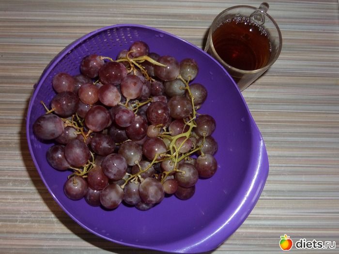 Завтракала виноградом (на фото общая тарелка, я съела не все). И мне муж заварил черный чай.
