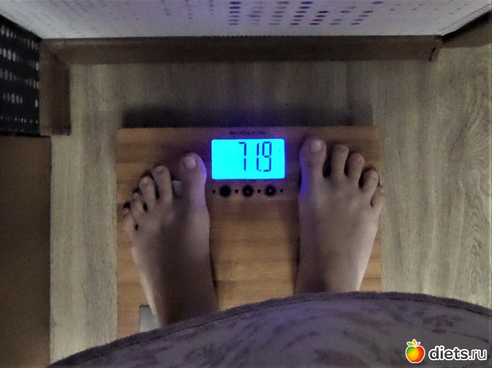 Вес 72,2 кг. Минус 100 гр за мини-круг и минус 12,8 кг (с 85 кг до 72,2 кг) за всю диету (2 больших круга, 2 водных дня и 6 мини-кругов).