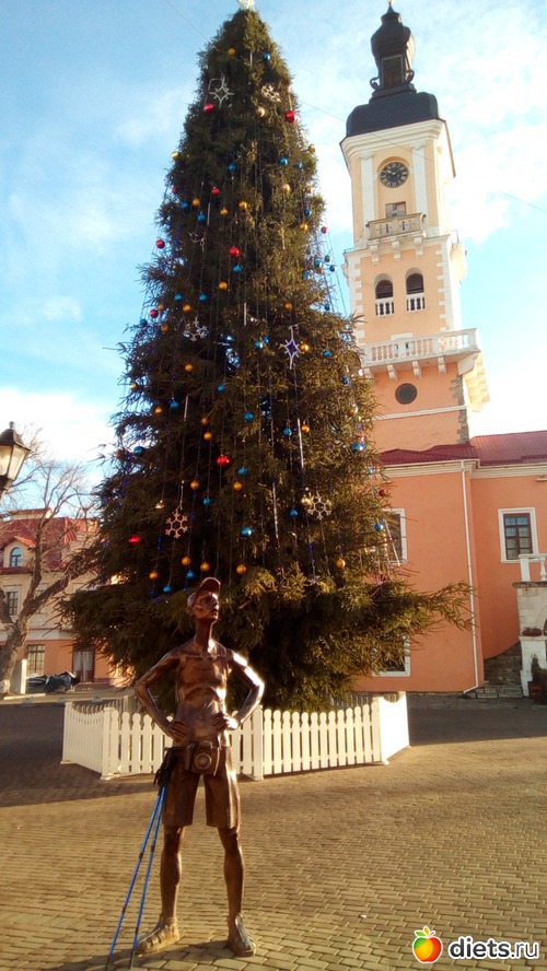 Городская ратуша и одинокий утренний турист(тоже с палками, подозрительно похожими на мои).