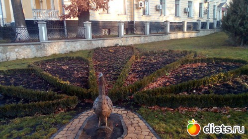 Дальше, прохожу сквер и почти дохожу до "границы"Старого города. Посмотрите на этого красивого павлина, весной-осенью он великолепен,"на хвост"ему высаживают много цветов и он стоит горделиво.