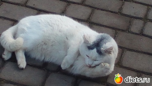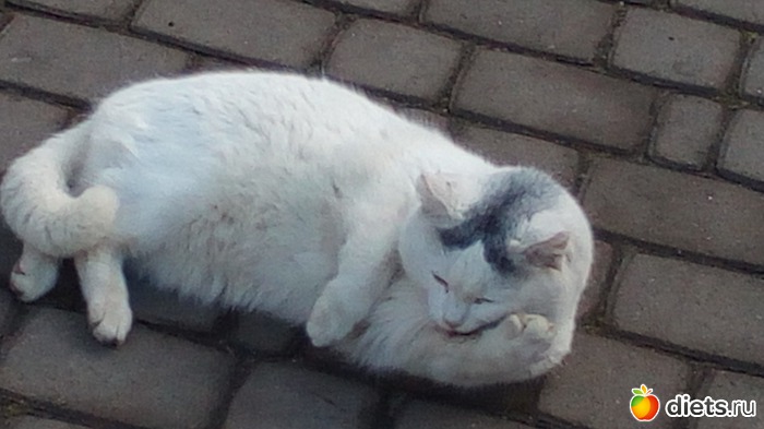 Потому, что передо мной предстала "грациозная кошка"(вернее, это был кот)и у меня было впечатление, что он глотнул воздушный шар и теперь еле-еле лапками достает до земли. Ах, какой красивый, подлец! Перевернулся передо мной на спину и давай "коленца выкидывать".