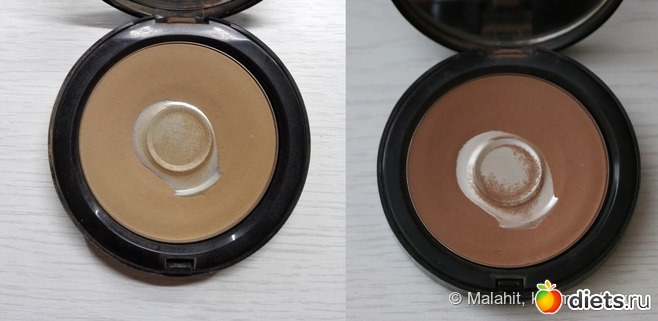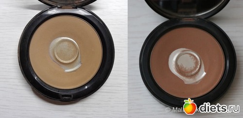 Для наглядности покажу пару сравнительных фото палетки и бронзера за два месяца использования.