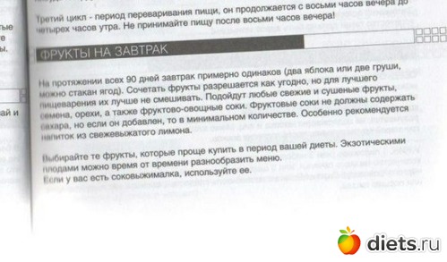 но опять таки где то я уже писала) и щаз напишу. я не хочу спорить) кушайте девочки как вам удобно) я просто написала что неправильно вы текст книги истолковали) ну вот фотку странички из книги вы сюда добавляли там черным по белому написано . про общую инфу за 90 дней по фруктам...там неговориться что хомячить орехи и семечки можно каждый день) и в меню когда нам примеры питания показывают в книге нигде там нет орехов каждый день и семечков, а вот сухофрукты да можно я не спорю)