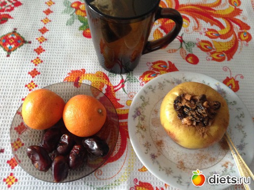 Ланч: яблоко запеченное с орехом, изюмом и корицей.