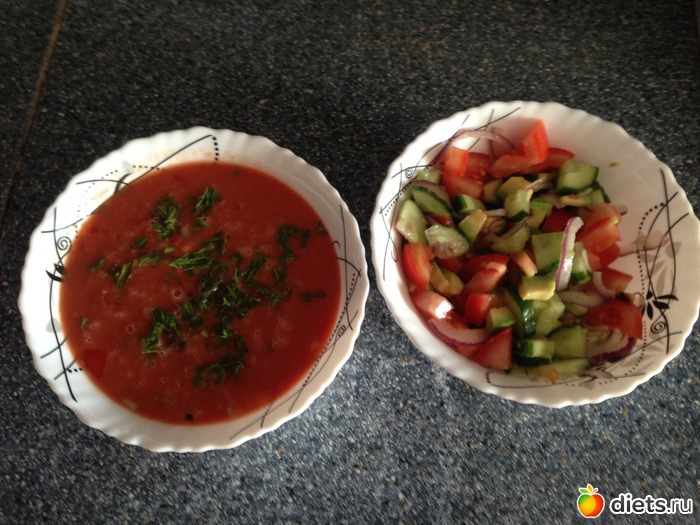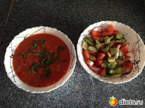 Обед: Сделала себе гаспачо, только хлеб не добавляла.(весь не съела, многовато показалось)