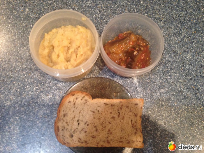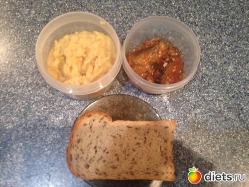 Ужин - 1/2 от порции горохового пюре + баклажаны, минус хлеб.