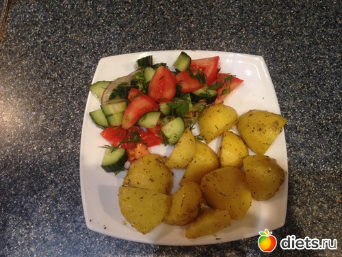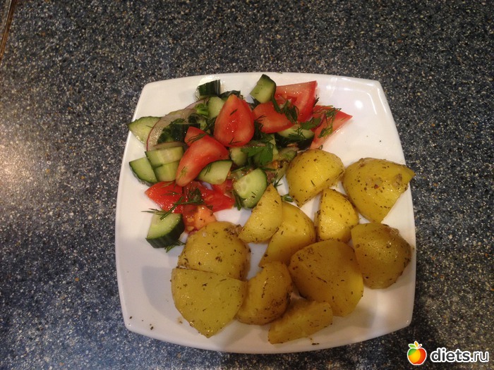 Ужин: картофель запеченный с травками и чесночком, салат овощной.