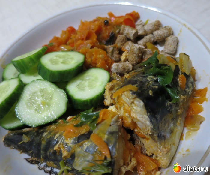 Ужин - НАИВКУСНЕЙШАЯ рыбка скумбрия тушеная с овощами +огурчик