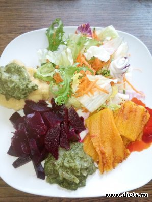 Она, котлетка развалилась и потеряла форму, потому что я ее поместила на гриль и придавила, ну ничего, я на фото украсила ее шпинатом... Если что, вот та горка странного цвета - это гороховая котлетка.