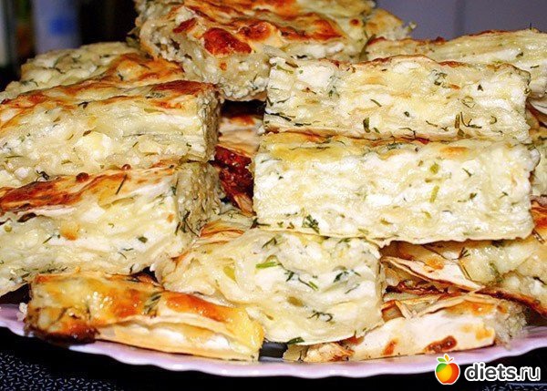 Далее повторяем процедуру пока не закончится лаваш. Последним слоем будут остатки сыра с творогом и зелени.