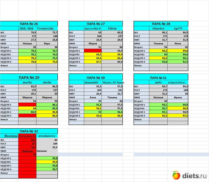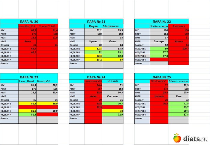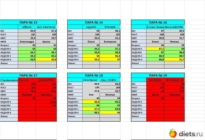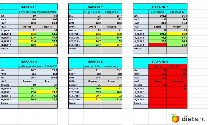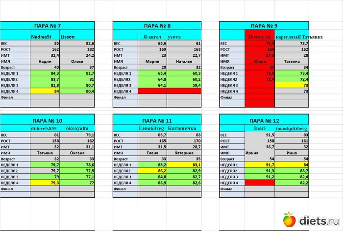 Так все наглядно. Очень интересно посмотреть динамику у других участниц.